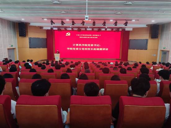 典礼第二项,赵晓霞书记致辞。赵书记对参加本次培训班的学员们表示衷心的祝贺和热烈的欢迎,同时,对全体学员提出三点希望和要求:一要铸牢理想信念之魂,矢志不渝跟党走;二要深化理论学习之基,铸就思想新高地;三要弘扬报国强国之志,攻坚克难担使命。她对本次培训班学员寄予厚望,希望学员们能够系统全面地学习党的理论知识,筑牢理想信念。在新时代新征程上,作为计算机学子要刻苦锻炼专业本领,做国家需要的优秀人才,以优秀共产党员为榜样,把个人的“小我”融入到国家发展、人民幸福的“大我”之中,厚植“无我”的家国情怀,勇挑时代重担,以奋斗之姿,书写青春华章。