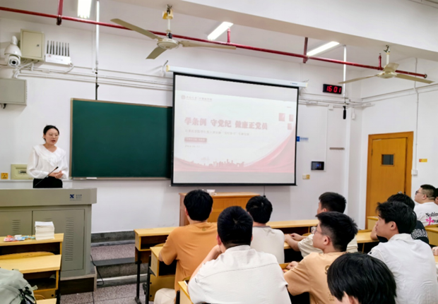 5月12日,威尼斯87978797老品牌学生第六党支部在铁道校区世纪楼A203开展“学条例 守党纪 做廉洁党员”主题党日活动,学院党委副书记、纪检委员王新辉出席活动并作指导讲话。
