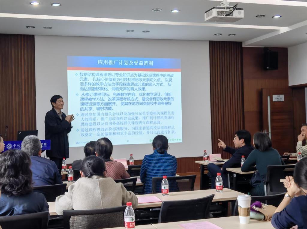 陈志刚教授在总结讲话中对各位评审专家的莅临指导表示感谢,尤其是各位专家对每个课程在课程思政建设方面給予了精准的指导。他强调,老师们应当结合课程特点、教学内容和教学环节深度思考课程思政目标,在教学过程中要有意、有机、有效地对学生进行思想政治教育,教学的顶层设计上要把人的思想政治培养作为课程教学的目标放在首位,并与专业发展教育相结合。同时,从学生的评价与反馈中不断反思、改进教学手段,努力提升课程思政建设水平,有效提高计算机类人才培养质量。