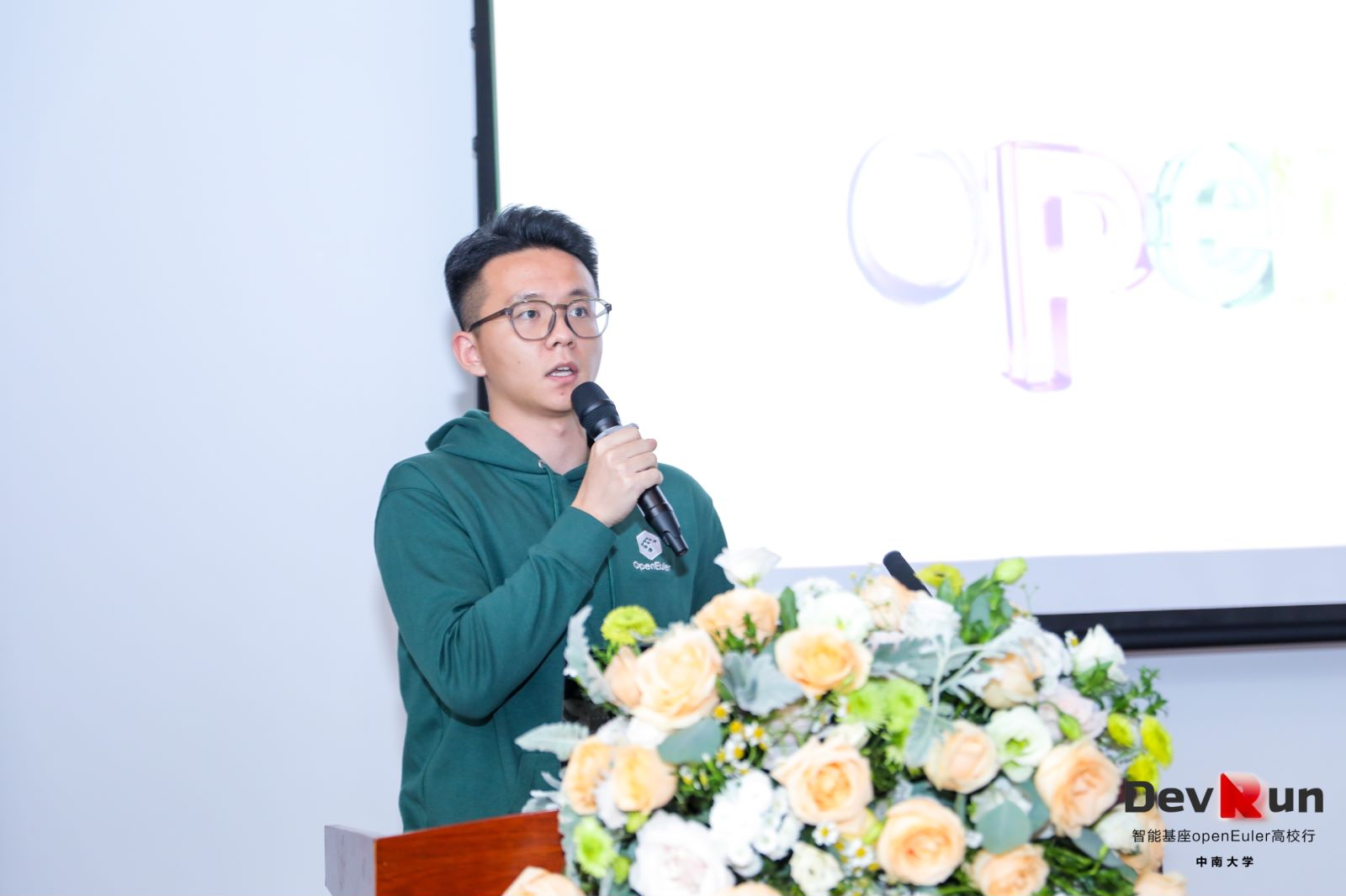 接着,麒麟软件高级研发工程师杜奕威先生从合作伙伴的角度进行了“我在openEuler成长之路”主题分享,讲述了与openEuler社区结缘,签署CLA,参与到openEuler社区的开发和维护中,并在openEuler社区中步步耕耘、逐步成长的故事。从参与者转变为分享者,他激励着在场同学参与到openEuler社区建设中。