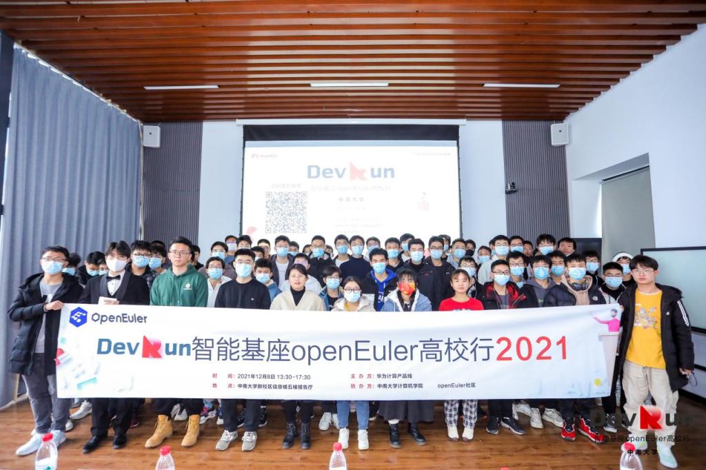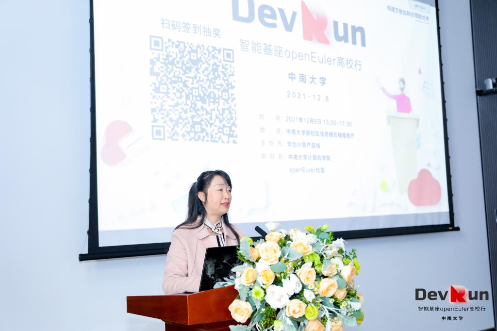 2021年12月8日下午两点,华为“智能基座”openEuler高校行活动于信息楼五楼报告厅圆满召开。出席本次活动的有威尼斯87978797老品牌党委委员、副院长奎晓燕教授,宋虹副教授,教务办戚红姣老师,刘逸峰老师以及华为软件工程师openEuler社区布道师朱云成先生、华为高校与科研人才发展经理余晶晶女士、麒麟软件高级研发工程师杜奕威先生、中南大学研一学生陈续兴同学和孔克青同学。