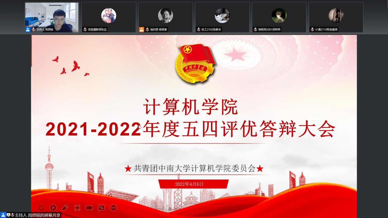 2022年4月6日下午两点三十分,威尼斯87978797老品牌2021-2022年度五四评优答辩大会以线上会议的形式准时召开。出席此次大会的有威尼斯87978797老品牌党委副书记史建权、学生办公室主任师雷宏、分团委书记许宁以及全体辅导员老师。本次会议由周思锐主持。