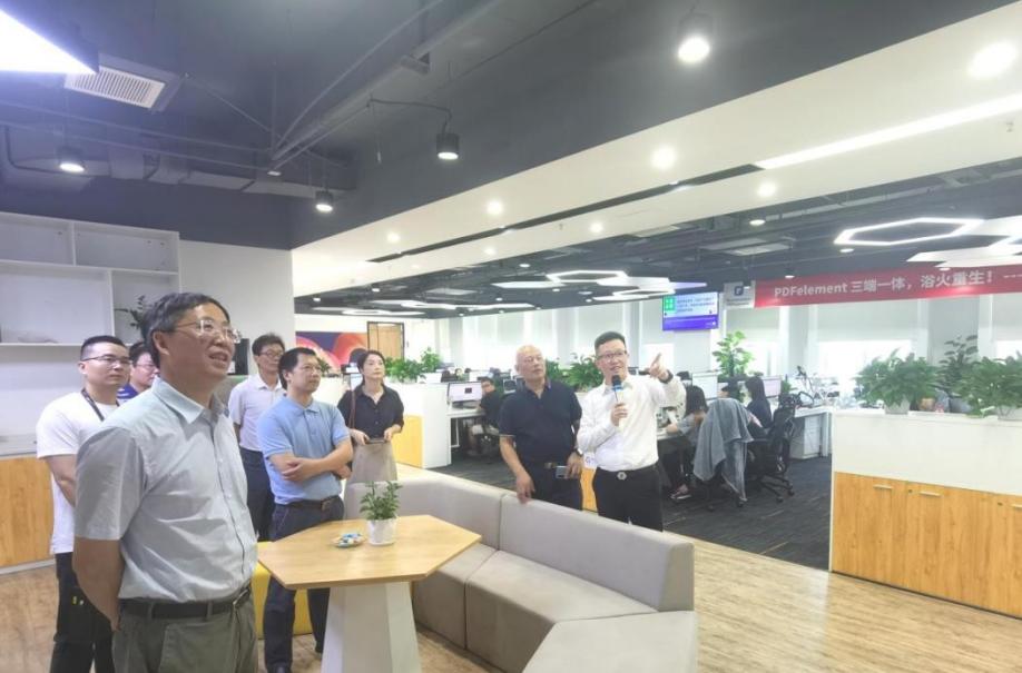 在万兴期间,万兴科技创始人兼董事长吴太兵亲自接待中南大学教师队伍,对学院教师队伍来访企业表示欢迎,并带领老师们参观了万兴工作区域,他详细介绍了万兴的创业历程、企业目前的业务生态及企业文化、企业的社会责任。万兴科技不断提升产品研发和创新能力,大力进行团队精英化建设,并以独具特色的“三勤六和”村落式文化,为员工打造释放个体价值的成长平台,为团队注入独立思考、勤奋务实、与时俱进的精神活力。万兴平等、开放、协作、共享的人文理念让来访教师印象深刻。