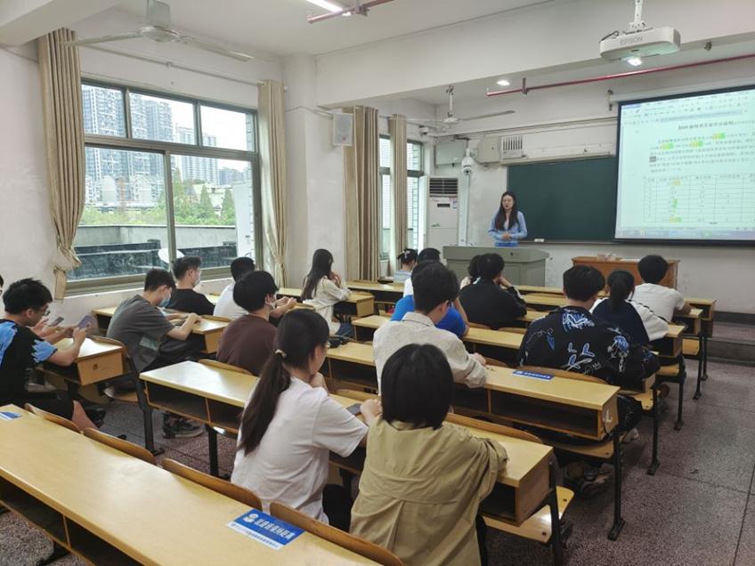 费洪晓老师向大家仔细地解读了软件工程专业的培养方案,讲解了学分的要求,介绍了软件工程“做中学”、“基于项目的教育和学习”的培养理念,使同学们具备CDIO的能力。之后,费老师对同学们提出的问题进行了一一解答。