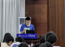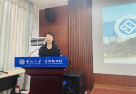 卓越拔尖2021级学生章蓓雯同学做了《Core Asset Identification and Visual Analysis Algorithm Based on Data Asset Lineage Graph 》的报告,学生所在团队通过研究拓扑结构和业务属性识别数据资产图谱中的核心数据资产。数据资产图谱具有多类型多关系特点,软件设计一种基于中心性理论的核心数据资产识别算法,将复杂的原始数据资产图谱中的核心数据资产识别出来,帮助用户快速把握数据资产图谱全局信息,以更好地理解网络并挖掘价值信息。