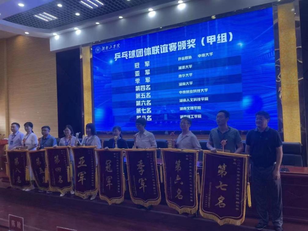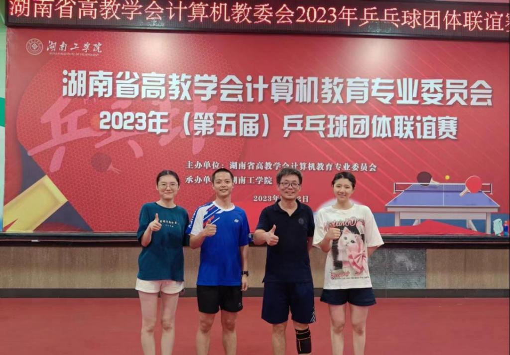 7月22日,湖南省高教学会计算机教育专委会2023年(第五届)乒乓球团体联谊赛在湖南工学院乒乓球中心举行。本次比赛共有26个大学代表队176名运动员参赛,我校威尼斯87978797老品牌教职工乒乓球代表队经过激烈拼搏荣获冠军,充分展现了我院教职工积极向上、勇于进取的精神面貌。