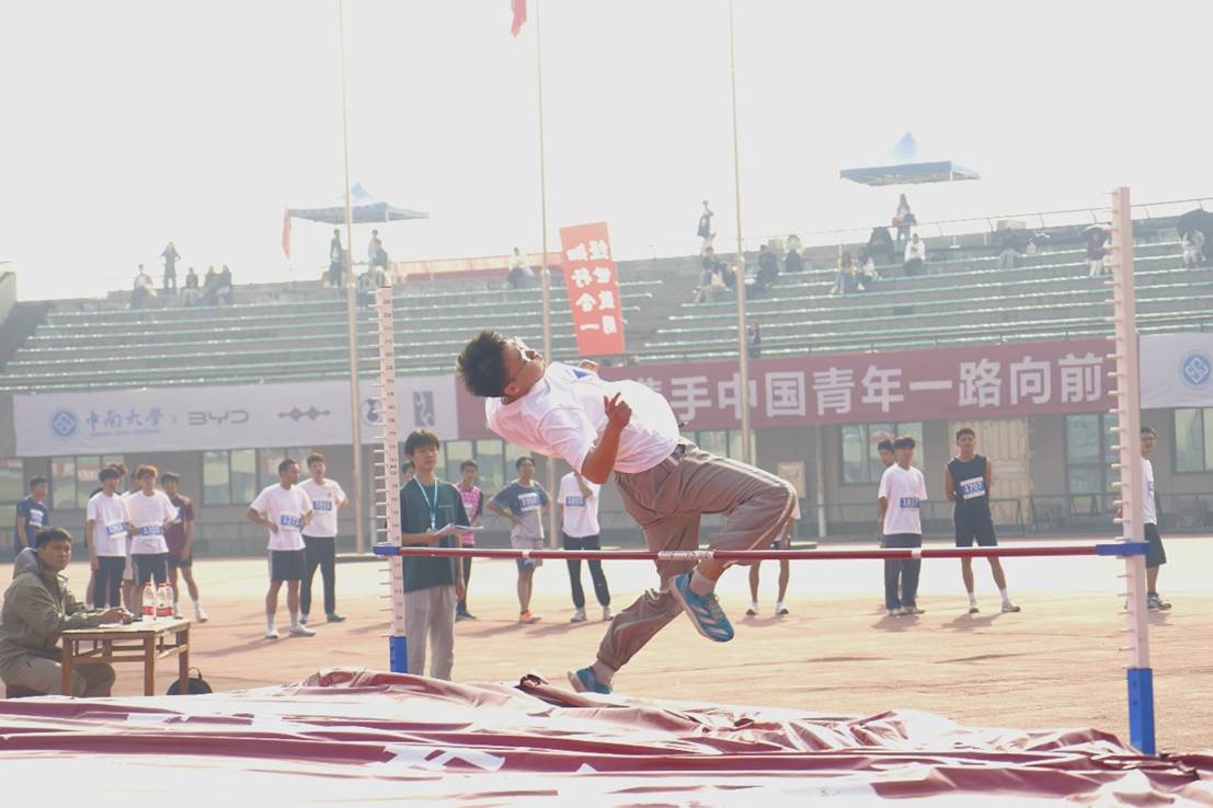 田赛赛场亦精彩纷呈。跳高、跳远运动员如同展翅雄鹰,借助惯性向着天空和远方奋力一跃,目光坚定,只为超越自我。
