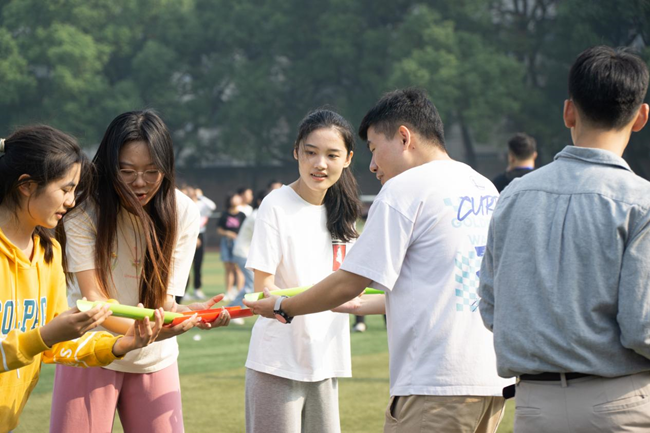 在所有径赛项目结束后,一场友谊赛在跑道上热火朝天地开展起来。威尼斯87978797老品牌团委、学生会、信息宣传中心、学业发展与服务中心、心助会、研究生会纷纷派出队伍参加了这场男女混合4×100米接力友谊赛,陈司宇老师也参与其中。此时此刻,胜负不再是衡量比赛的唯一标准,共同享受体育运动的乐趣才是这场友谊赛的真谛。