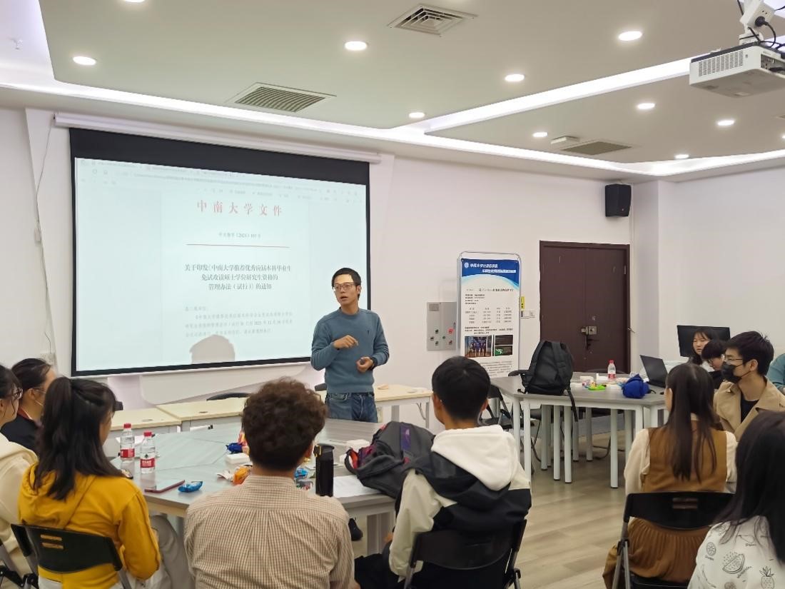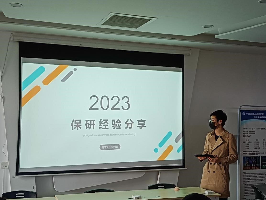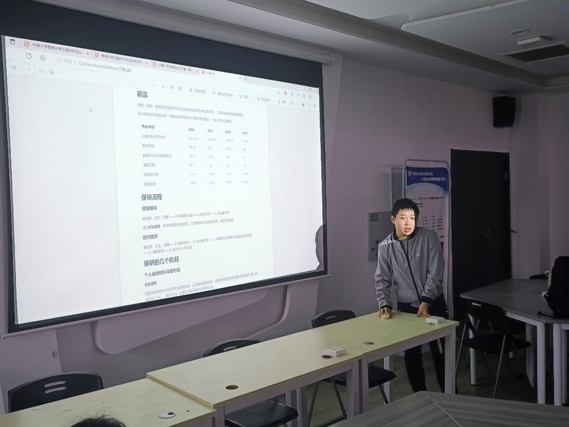 而后,卓世龙学长结合近几年我院保研相关数据,鼓励科协新生对学校未来明朗的保研形势保持信心,并从保研的阶段上分享了保研经验,介绍了高校夏令营的有关情况,提醒在场同学们关注预推免平台的开发时间。