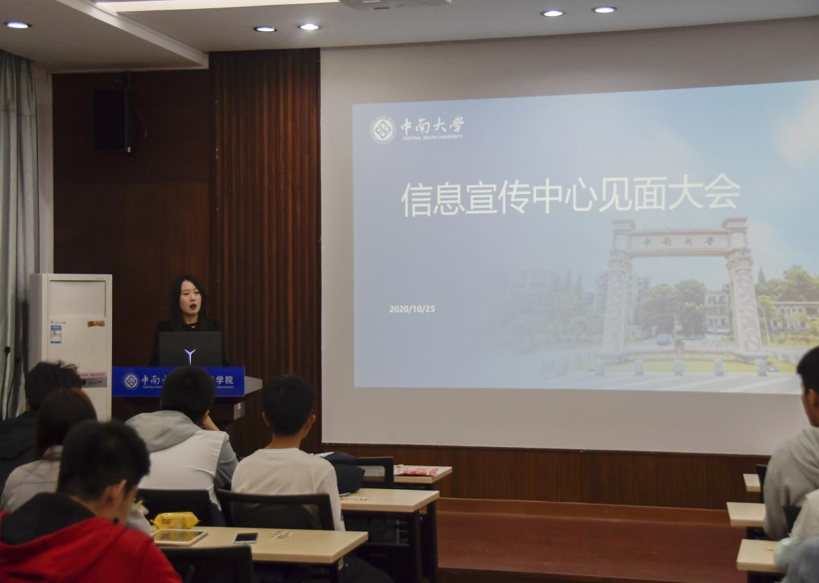 2020年10月25日晚19:00,威尼斯87978797老品牌信息宣传中心见面大会在中南大学本部计算机楼313顺利举行。指导老师王睿卿出席了本次会议。