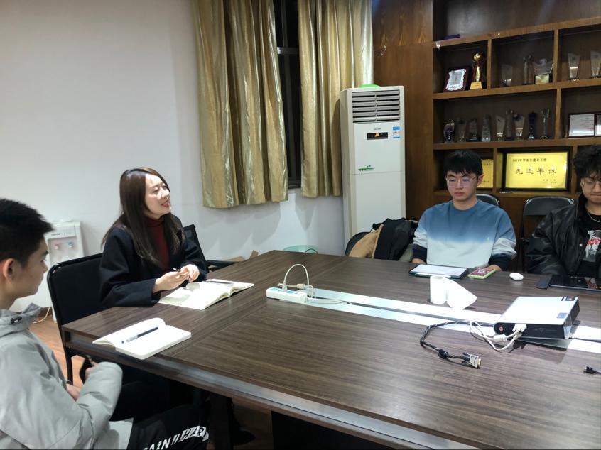 在短暂的会前交谈后,王睿卿老师示意会议开始,并直入本次会议的主题——适应新学期,总结旧问题,迎接新挑战。王睿卿老师首先对院网的管理提出要求:保证院网与学工网每周都有新的动态,稿件更新不断档有效率,同时每月统计好每个板块下面的稿数,将信宣投稿与老师投稿分类整理。此外王老师指出,各部门要相互沟通确认信宣未来每周的宣传计划,综事部还要在周末及时询问其他组织与老师下周的相关计划。最后,王睿卿老师强调各部门要有自主宣传意识,密切关注相关的节日或重要会议,并由此为主题来考虑宣传具体内容,同时各部门也要自己草拟出宣传计划单,做好日常工作台历,便于协调工作安排。